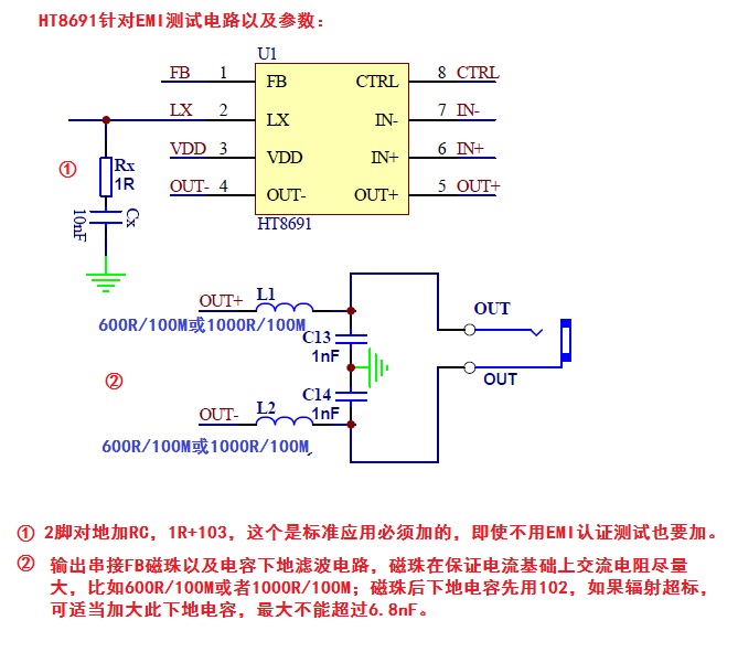 HT8691R(適用于背包音箱的內(nèi)置升壓防破音功能的D/AB類切換單聲道10W音頻功放IC)