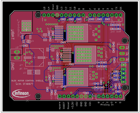 圖7.馬達(dá)控制板PCB設(shè)計(jì)圖:Arduino和IFX007T