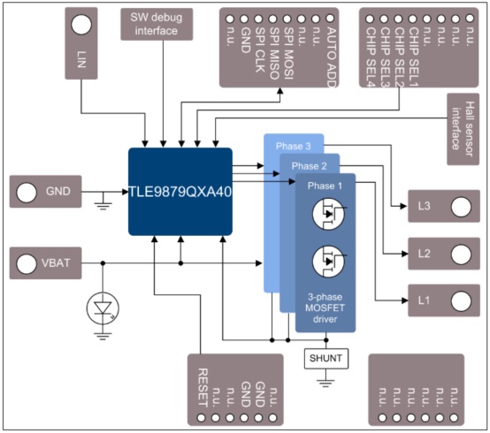圖2. TLE9879QXA40簡(jiǎn)化的應(yīng)用框圖