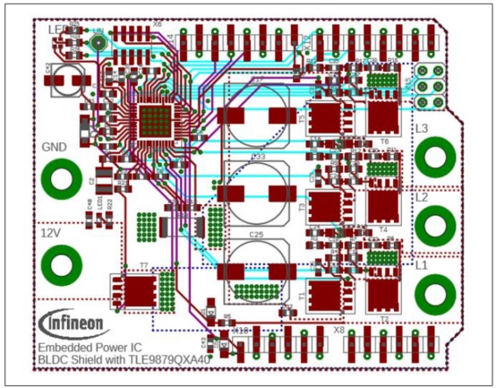 圖3. TLE9879 BLDC Arduino馬達(dá)控制板外形圖