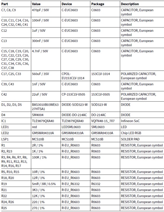 TLE9879 BLDC Arduino馬達(dá)控制板材料清單: