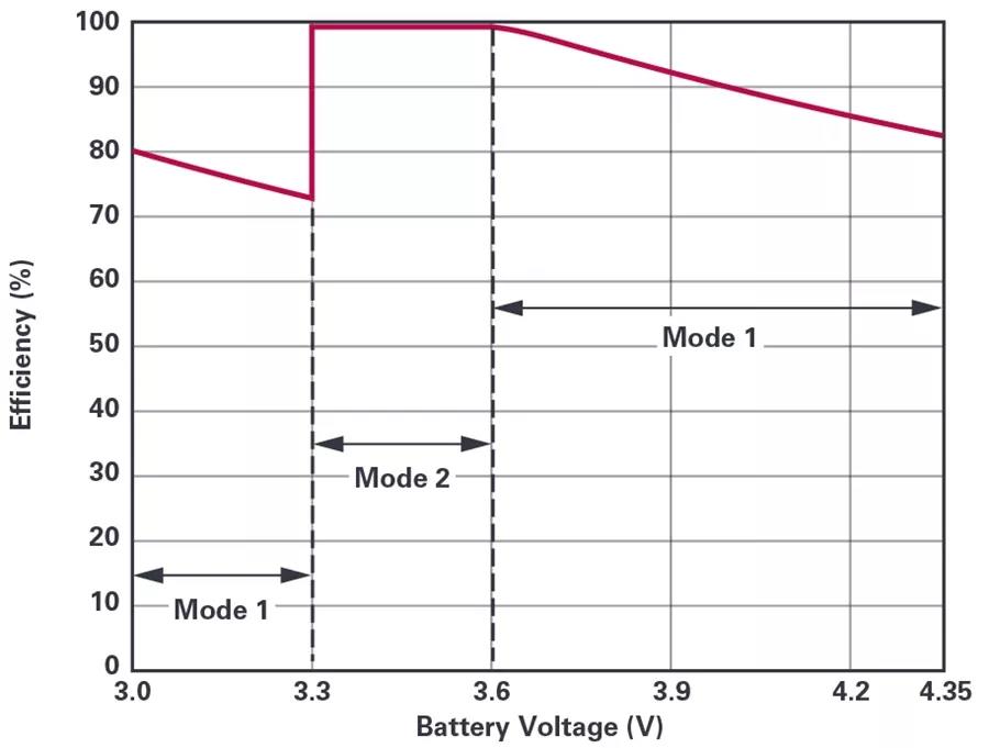 充電泵DC-DC轉(zhuǎn)換器具有三種操作模式,具體取決于電池電壓,以提高整體效率。