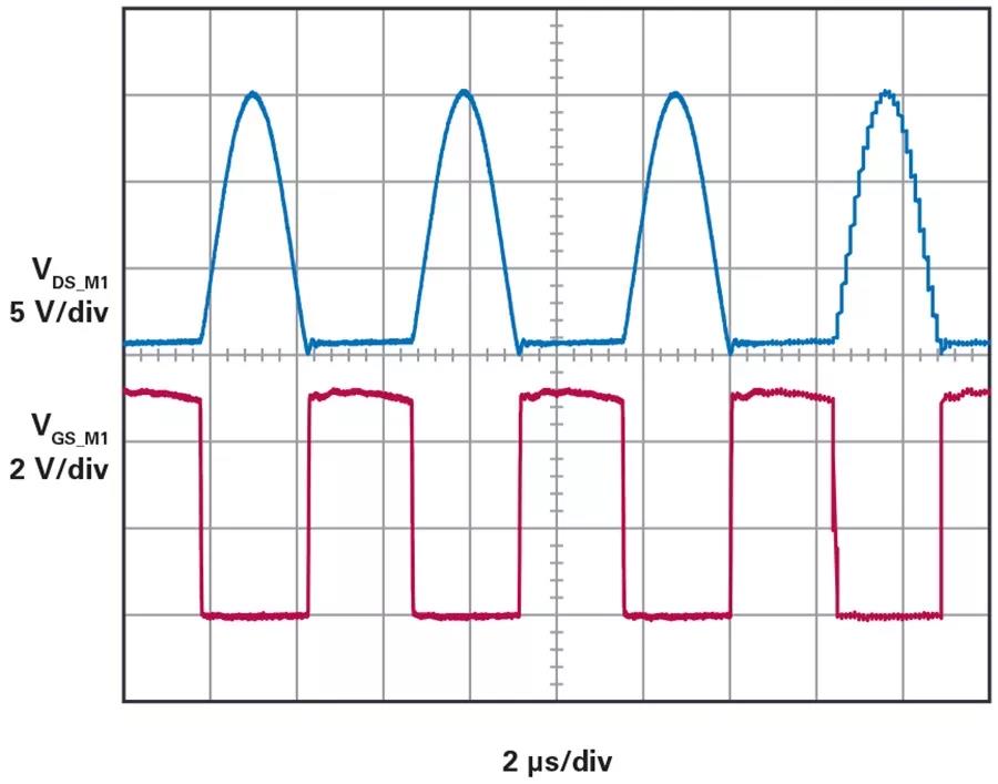 圖5. ZfTX_TANK = 1.29 × fDRIVE時(shí)的ZVS操作。