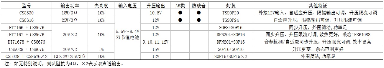 ·單節(jié)鋰電內(nèi)置升壓音頻功放IC選型