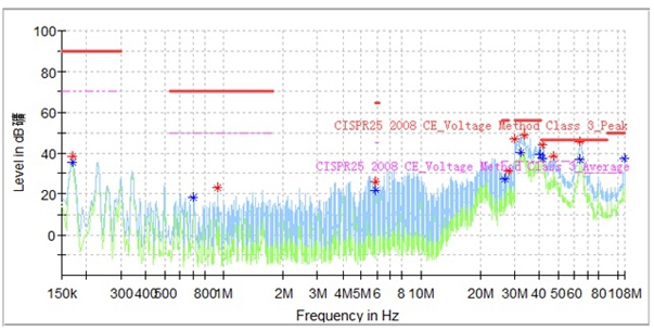 用頻譜分析儀和近場(chǎng)探頭定位噪聲點(diǎn),確定干擾來(lái)自電機(jī)控制器的DCDC輸出線。DCDC模塊是電機(jī)控制器內(nèi)的最大干擾源,干擾很容易通過(guò)輸出線纜向外傳導(dǎo)或者直接通過(guò)空間向外輻射,甚至耦合到其他電源線、信號(hào)線,此外,DCDC輸出負(fù)極通過(guò)鈑金件直接接機(jī)殼,即已經(jīng)和接地參考平面相連,如果處理不好,就可能導(dǎo)致地電位不穩(wěn)。