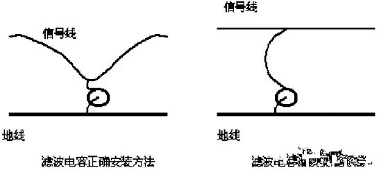 圖3、濾波電容的正確安裝方法與錯誤安裝方法