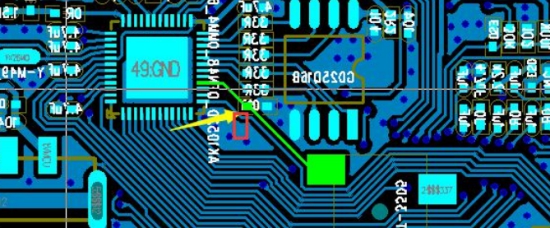 經(jīng)過審核AUX端口的結構,我們發(fā)現(xiàn)其內(nèi)部有金屬引腳延伸比較長,并且每個引腳都是直接與IC的PING腳相連;從而使得靜電可以通過金屬引腳直接干擾到IC引腳。所以首先在這三個引腳對地并聯(lián)ASIM ESD(型號:CV0402VT6201T),再進行空氣放電的時候,發(fā)現(xiàn)樣機沒有出現(xiàn)之前出現(xiàn)的聲音異,F(xiàn)象。如下圖為整改PCB圖: