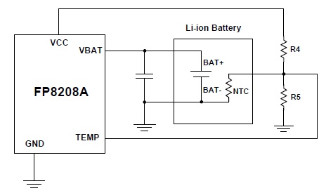 FP8208A 設(shè)有內(nèi)建過(guò)壓保護(hù)功能,當(dāng)輸入adaptor 電壓超過(guò)6V 時(shí),IC 將會(huì)關(guān)機(jī)以防止受到損傷,當(dāng)過(guò)壓保護(hù)發(fā)生時(shí)需等輸入電壓掉到過(guò)壓保護(hù)點(diǎn)的遲滯電壓以下(約0.2V)才會(huì)恢復(fù)正常充電。