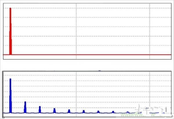 正弦波(頂部)和方波(底部)的頻域表示