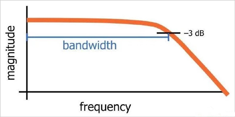 RC低通濾波器的截止頻率實(shí)際上是輸入信號(hào)幅度降低3dB的頻率(選擇該值是因?yàn)榉冉档?dB對(duì)應(yīng)于功率降低50%)。因此,截止頻率也稱為-3 dB頻率,實(shí)際上該名稱更準(zhǔn)確且信息量更大。術(shù)語(yǔ)帶寬是指濾波器通帶的寬度,在低通濾波器的情況下,帶寬等于-3 dB頻率(如下圖所示)。