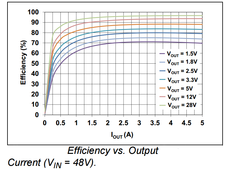 Efficiency vs. Output Current (VIN = 48V)