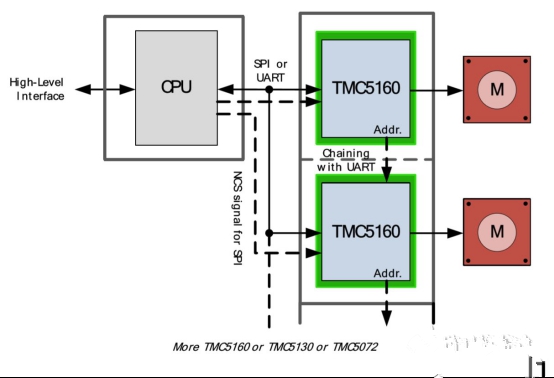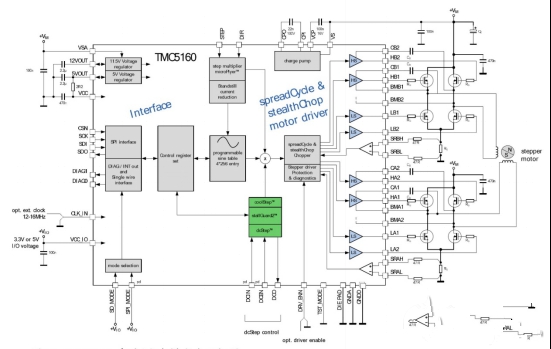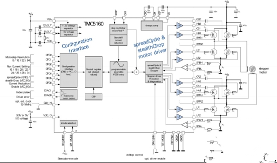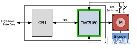 基于驅(qū)動芯片TMC5160為基礎(chǔ)的步進(jìn)電機(jī)小型化設(shè)計(jì)圖4:TMC5160基本應(yīng)用框圖(運(yùn)動控制器)