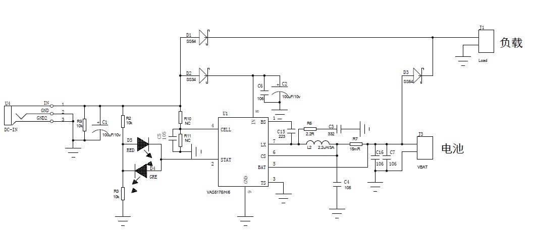 | VAS5175/VAS5176多節(jié)鋰電充電管理IC加路徑管理應(yīng)用電路 |