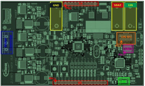 圖8.評估板TLE9879 EvalKit V1.3測試點圖