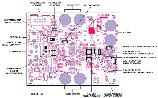 The EVAL-SSM3582Z is the evaluation board for the SSM3582 or the SSM3582A, integrated stereo, 31.76 W, high efficiency, Class D, audio amplifiers with a digital input. This evaluation board can be used for both the SSM3582 or the SSM3582A devices.