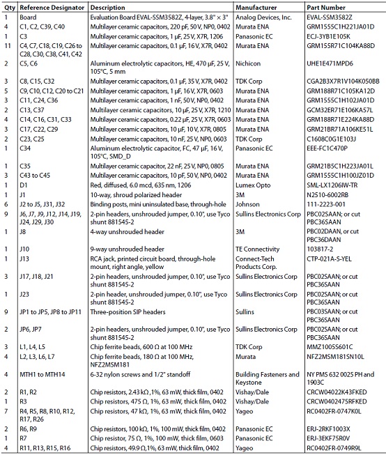 評估板EVAL-SSM3582Z材料清單: