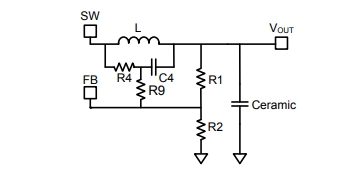 如果輸出電容具有足夠的等效串聯(lián)電阻(ESR),則由該ESR產(chǎn)生的反饋斜坡電壓主導(dǎo)電感的較小串聯(lián)電阻。在這種情況下,一個簡單的電阻分壓器網(wǎng)絡(luò)就足夠了 (參見圖5),通?捎糜陔娊怆娙莼騊OSCAP電容。