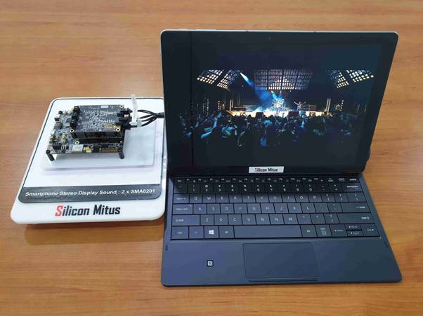 除此之外,在現(xiàn)場還可以欣賞與屏幕發(fā)聲完美結(jié)合的壓電陶瓷驅(qū)動(dòng)芯片(Piezo Driver),也就是Silicon Mitus的SMA6201產(chǎn)品。這款產(chǎn)品可適用于智能手機(jī)、平板、筆記本和臺式電腦。通過在顯示面板上引起的細(xì)微震動(dòng),全屏可自發(fā)聲。