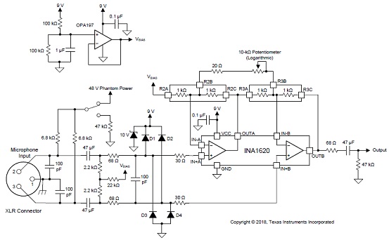 圖3.專業(yè)麥克風(fēng)預(yù)放大器電路