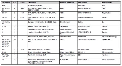 INA1620 EVM材料清單: