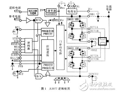 隨著微步進(jìn)電機(jī)應(yīng)用的日益廣泛,其驅(qū)動(dòng)電路的發(fā)展也相當(dāng)迅速,各類(lèi)控制芯片的功能越來(lái)越豐富,操作也越來(lái)越簡(jiǎn)便。A3977是一種新近開(kāi)發(fā)出來(lái)、專(zhuān)門(mén)用于雙極型步進(jìn)電機(jī)的微步進(jìn)電機(jī)驅(qū)動(dòng)集成電路,其內(nèi)部集成了步進(jìn)和直接譯碼接口、正反轉(zhuǎn)控制電路、雙H橋驅(qū)動(dòng),電流輸出2.5A,最大輸出功率可接近90W。它主要的設(shè)計(jì)功能包括:自動(dòng)混合模式電流衰減控制,PWM電流控制,同步整流,低輸出阻抗的DMOS電源輸出,全、半、1/4及1/8步進(jìn)操作,HOME輸出,休眠模式以及易實(shí)現(xiàn)的步進(jìn)和方向接口等。其應(yīng)用電路結(jié)構(gòu)簡(jiǎn)單、使用及控制方便,有著極其廣泛的應(yīng)用價(jià)值。