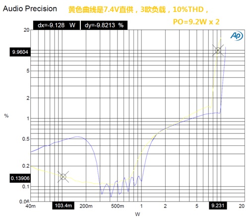 1. CS83785 3.7V供電對比普通音頻功放7.4V直供輸出功率,實測CS83785功率大2W以上: