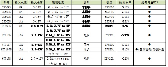 11.DC-DC升壓芯片選型表