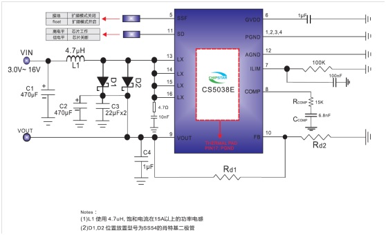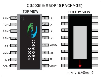 CS5038 輸入電壓范圍:3-16V,可調(diào)電壓輸出最高至22V/5A輸出 ESOP-16 3V-16V 內(nèi)置MOS,14A 高效率升壓DC-DC轉(zhuǎn)換器
