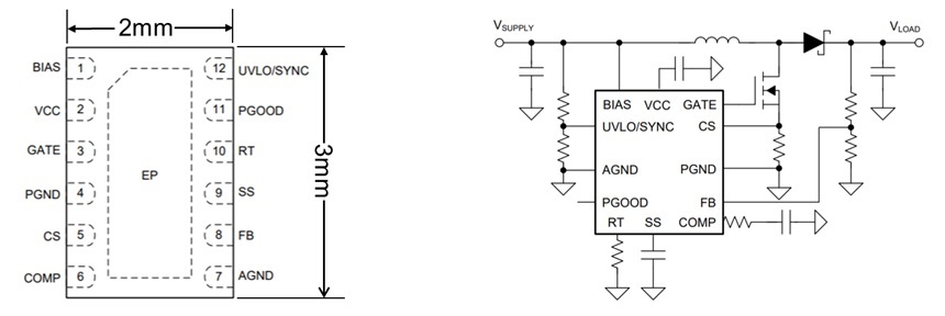 圖4. LM5155封裝示意圖            圖5. LM5155升壓應(yīng)用電路圖