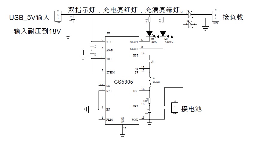 3A開關(guān)降壓型單節(jié)鋰電充電管理CS5305帶路徑管理應(yīng)用原理圖