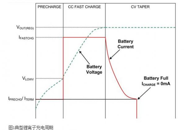 鋰離子電池要求專門的充電周期,以完成安全充電并最大化電池運(yùn)用時(shí)間。電池充電分兩個(gè)階段:安穩(wěn)電流 (CC) 和安穩(wěn)電壓 (CV)。電池位于徹底充溢電壓以下時(shí),電流經(jīng)過穩(wěn)壓進(jìn)入電池。在CC辦法下,電流經(jīng)過穩(wěn)壓達(dá)到兩個(gè)值之一。假定電池電壓非常低,則充電電流下降至預(yù)充電電平,以習(xí)慣電池并避免電池損壞。該閾值因電池化學(xué)特點(diǎn)而不同,一般取決于電池制造廠商。一旦電池電壓升至預(yù)充電閾值以上,充電便升至快速充電電流電平。典型電池的最大建議快速充電電流為1C(C=1 小時(shí)內(nèi)耗盡電池所需的電流),但該電流也取決地電池制造廠商。典型充電電流為~0.8C,目的是最大化電池運(yùn)用時(shí)間。對(duì)電池充電時(shí),電壓上升。一旦電池電壓升至穩(wěn)壓電壓(一般為4.2V),充電電流逐步減少,一同對(duì)電池電壓進(jìn)行穩(wěn)壓以避免過充電。在這種辦法下,電池充電時(shí)電流逐步減少,一同電池阻抗下降。假定電流降至預(yù)訂電平(一般為快速充電電流的10%),則終止充電。咱們一般不對(duì)電池浮充電,因?yàn)檫@樣會(huì)縮短電池運(yùn)用壽數(shù)。圖1 以圖形辦法闡清楚典型的充電周期。