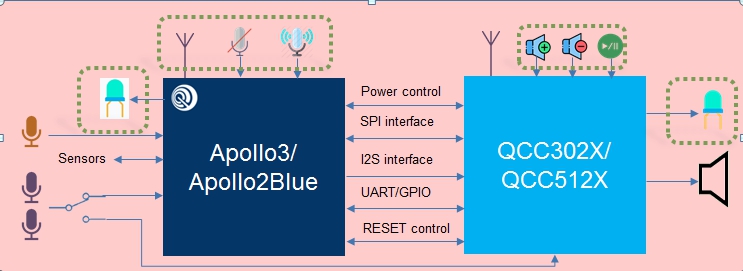 內(nèi)嵌Ambiq Micro超低功耗ARM4F MCU,工作電流小于10 μA/MHz。集成高精度中英文KWD關(guān)鍵詞檢測(cè)算法,閑態(tài)平均0.6mW,忙時(shí)平均3.06mW。高通新一代藍(lán)牙芯片方案,支持TWS和TWSplus,支持aptX技術(shù)可提供CD級(jí)音質(zhì)。配合DSP算法,可以支持CVC、ANC等降噪技術(shù),在通話時(shí)具有更清晰的效果。低功耗藍(lán)牙模式,在SBC編碼情況下最低4.3mA,支持更長(zhǎng)的音頻工作時(shí)間。與高通手機(jī)平臺(tái)有很好的適配性,在aptx-ll模式下時(shí)延低至50~80ms。出色的聲學(xué)結(jié)構(gòu)和雙PCB設(shè)計(jì),提供高質(zhì)量的音樂體驗(yàn)和小巧的外觀。