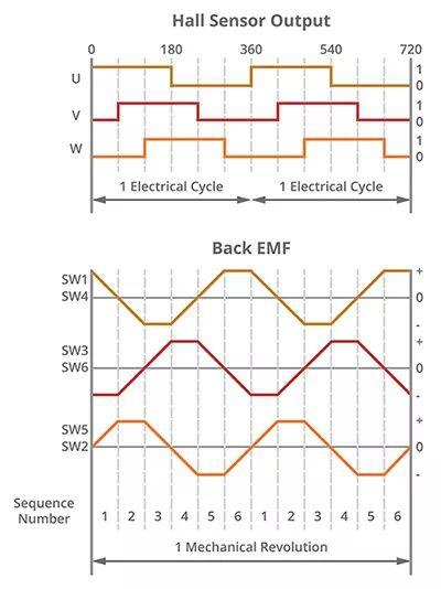圖 3:六步霍爾效應(yīng)輸出和梯形電機(jī)相位