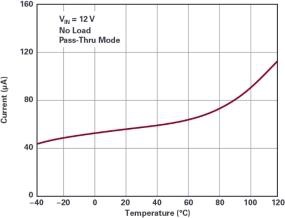 圖 6.LT8210 在直通區(qū)域內具有超低靜態(tài)電流。