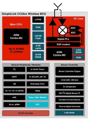 圖 1:Texas Instruments 的 CC2640R2F BLE 器件等高級無線微控制器,通過使用 Arm Cortex-M0 節(jié)能型處理器內(nèi)核來保持無線連接,同時使 Arm Cortex-M3 主處理器處于休眠狀態(tài),以此實現(xiàn)最佳的功耗。(圖片來源:Texas Instruments)