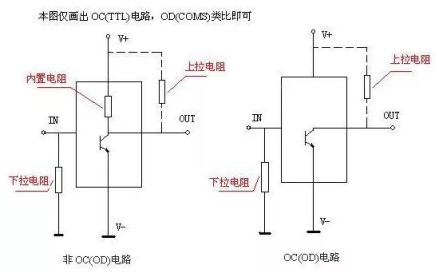 當(dāng)TTL電路驅(qū)動CMOS電路時,如果TTL電路輸出的高電平低于CMOS電路的最低高電平,這時就需要在TTL的輸出端接上拉電阻,以提高輸出高電平的值;OC門電路必須加上拉電阻,以提高輸出的高電平值。