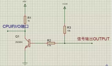如下圖中的R5所示,上拉電阻使三極管基極的輸入電平在默認(rèn)情況下是高電平輸入,當(dāng)CPU有低電平信號輸出時,外圍電路響應(yīng),下拉電阻使晶體管的基極輸入在默認(rèn)情況下拉到低電平,如下圖中的R6所示。
