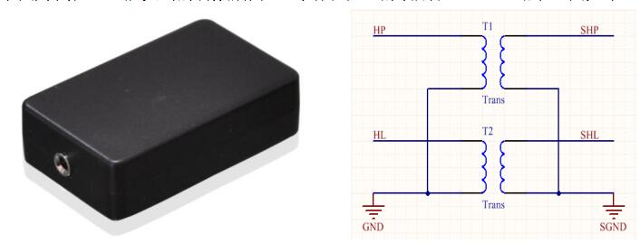 這種隔離器內(nèi)部很簡單,就是量耦合電感(左右聲道各一個(gè)),使用也挺方便的,唯一的遺憾就是其體積比較大,當(dāng)然也可以直接把這種耦合電感設(shè)計(jì)到板子上。