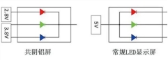 而共陽,是對(duì)R, G, B (紅、綠、藍(lán))給予一個(gè)高于3.8V的電壓(比如5V)統(tǒng)一供電,,此時(shí)紅、綠、藍(lán)得到的電壓都是統(tǒng)一的5V, 但紅、綠、藍(lán)這三個(gè)燈珠需要的最 佳工作電壓卻比5V低很多,根據(jù)功率公式 P=UI, 在電流不變的情況下,電壓越高,功率也就越高,也就是電量耗損就越大,同時(shí),LED顯示屏在工作中也會(huì)產(chǎn)品更多的熱量。