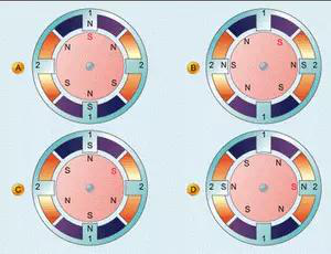 最后,我們再一次切斷繞組2中的電流,并給繞組1輸送如圖2a所示的電流,這樣,轉(zhuǎn)子又會回到原來的位置。