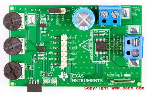 圖3.評估模塊DRV8876x/74xEVM外形圖(單個H橋馬達驅(qū)動器)