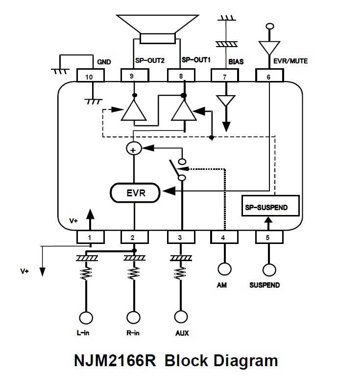 NJM2166是可從2.7V開始動作的單聲道功率放大器。本IC集成靜音功能、待機功能和AUX輸入等功能,適用于移動通信設(shè)備的音頻再生輸出部分。另外,考慮到在移動設(shè)備MCU和DSP的控制電路需要低電壓動作,所以本IC的控制部分是由3V的邏輯電路構(gòu)成。
