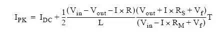 其中,Rs 為感應(yīng)電阻阻抗加電感繞線電阻的阻。Vf 是肖特基二極管的正向壓降。R 是 Rs 加 MOSFET 導(dǎo)通電阻,R=Rs+Rm。