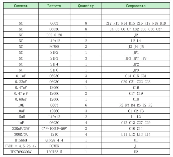 8. HT566 DEMO板物料清單