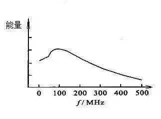 IEC 61000-4-2的 靜電放電的波形如圖2,可以看到靜電放電主要電流是一個(gè)上升沿在1nS左右的一個(gè)上升沿,要消除這個(gè)上升沿要求ESD保護(hù)器件響應(yīng)時(shí)間要小于這個(gè)時(shí)間。靜電放電的能量主要集中在幾十MHz到500MHz,很多時(shí)候我們能從頻譜上考慮,如濾波器濾除相應(yīng)頻帶的能量來(lái)實(shí)現(xiàn)靜電防護(hù)。其放電頻譜如下,這個(gè)圖是我自己畫(huà)的,只能定性的看,不能定量。