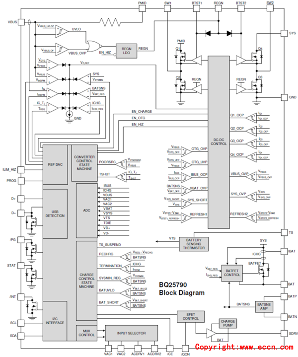 圖1. bq25790功能框圖