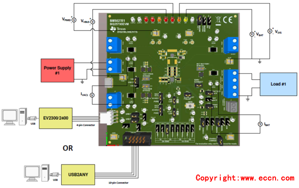 圖6. 評估模塊BQ25790EVM (BMS027)測試建立圖
