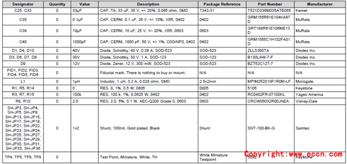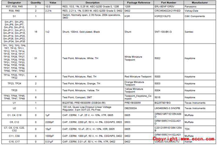 評估模塊BQ25790EVM (BMS027)材料清單: