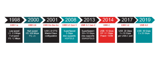 圖1:USB協(xié)議的發(fā)展歷程——2019年發(fā)布USB 4.0