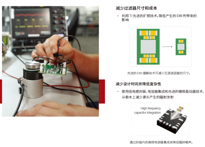 此。低 EMI 設(shè)計(jì)可為您顯著縮短開發(fā)周期,同時(shí)還可減少電路板面積和解決方案成本。TI 可提供